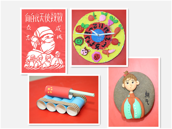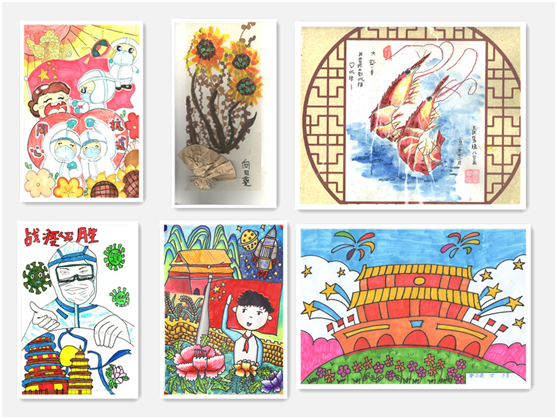 此次征集活动共收到作品91件,其中不仅有硬笔、毛笔、蜡笔、水粉画、景物素描等书绘类创作,还有色彩斑斓的手工作品。孩子们用手工展现童心世界,用画笔赞美抗击新冠肺炎疫情的英雄,用丹青书写中华文化。作品表现力强,充满奇思妙想,全面展示出孩子们丰富的想象力和动手能力,表现出新时代少年儿童的别样风采。