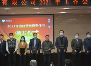 会上,朱峰向陈锋颁发了公司2021年“经营目标责任书”,陈锋代表公司向各下属企业负责人颁发了2021年“经营目标责任书”。