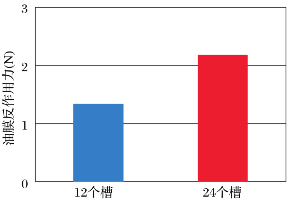 带12和24个V形润滑槽密封圈的油膜反作用力如图7所示。正如所估计的,槽数越多,油膜反作用力越大。因此,槽数越多,摩擦力矩降低越多。