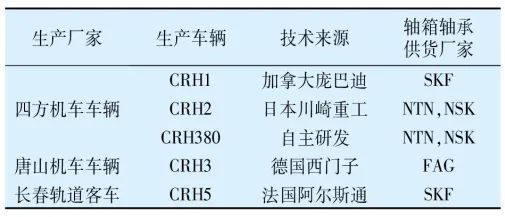 表3 动车组技术来源和进口轴承的生产厂家